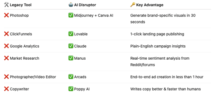 The real money is in specialized AI tools like Arcads for video creation, Lovable for landing pages, and Poppy AI for conversion-focused copy.